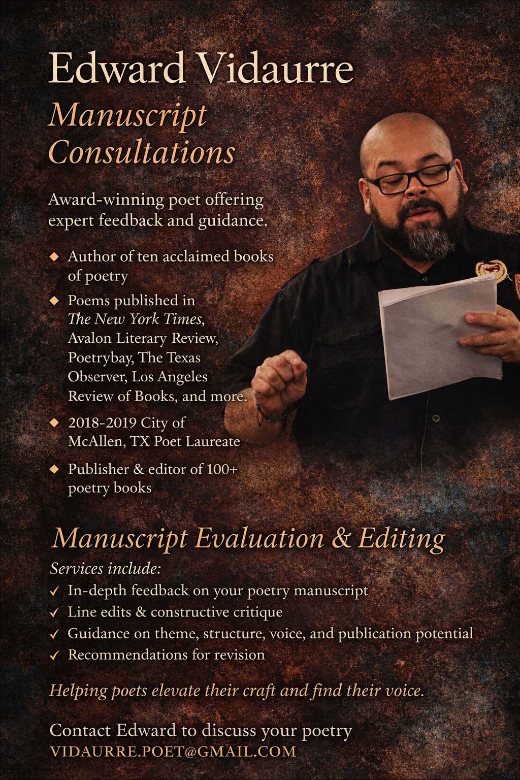 As an award-winning poet, editor of over 100 books, and publisher of FlowerSong Press, I offer thoughtful, direct, and honest feedback for poets at all stages of their writing journey. Whether you’re assembling your first collection or refining a manuscript for publication, I work with you to elevate the work without losing what makes it yours.